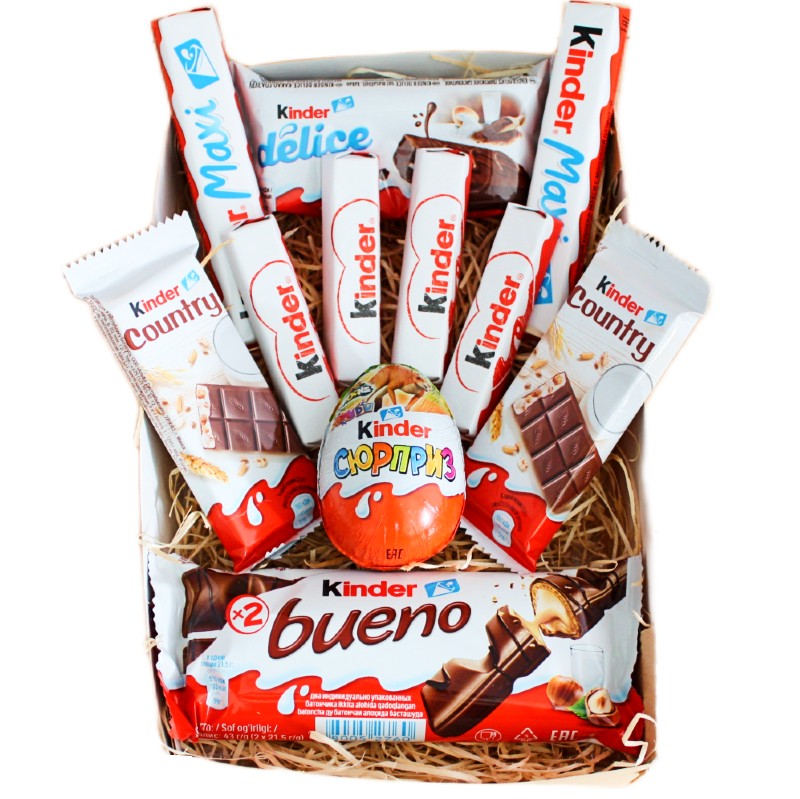Подарочный набор идеально подойдет в качестве подарка детям и женщинам: на день рождения, на выписку из роддом, на выпускной как в детском саду, так и в школе. В состав Киндер набора входит классический шоколад: Макси, Буэно, Шоколад, Делиз и, конечно, шоколадное яйцо Киндер Сюрприз с игрушкой внутри. Конечно, это не те самые игрушки из 90-х, которые еще помнят взрослые - бегемотики, динозаврики, акулы, но они тоже интересные, просто другие, например, иногда встречается леди баг или клуб винкс. Кстати, с новыми игрушками тоже снимают мультики и из них также можно собрать полную коллекцию. По сравнению с большими Киндер наборами в этот микс входит все необходимое, оставаясь при этом а рамках разумного бюджета и количества калорий.